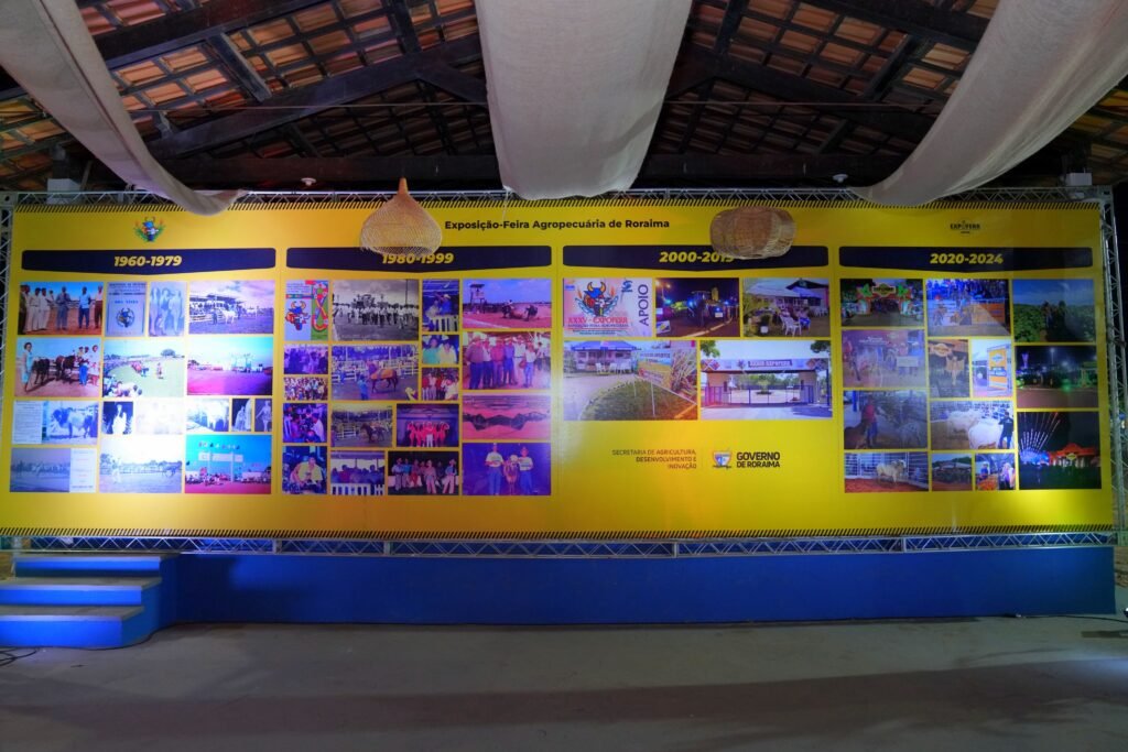 O estande “Linha do Tempo da Expoferr Show”, localizado no Parque de Exposições Dandãezinho, convida o público a revisitar mais de 40 anos de história, desde as primeiras feiras agropecuárias até a consolidação do evento como símbolo do desenvolvimento rural e econômico de Roraima.